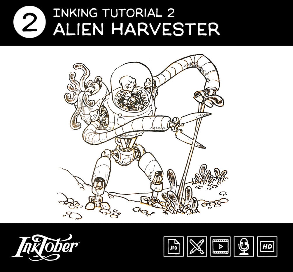In this series of inking tutorials, you will learn the basics of how to ink, starting with line work, then adding on textures, and finishing with value. Each tutorial builds on the skills learned in the last.